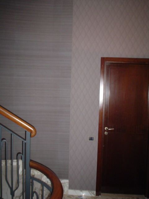 L'accostamento del motivo trapuntato e del "millerighe" crea un effetto davvero piacevole in questo vano scala.
