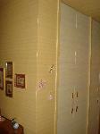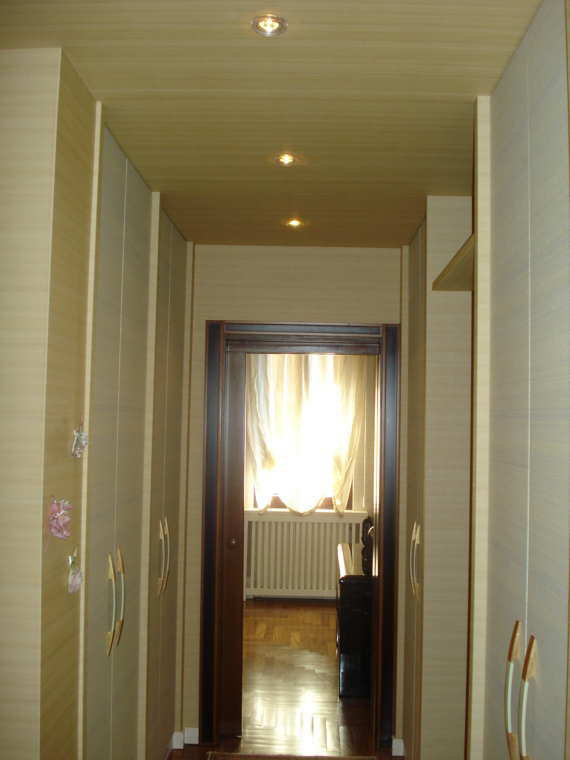 Pareti e ante dell'armadio rivastite creano un effetto di continuitą in questo piccolo corridoio.